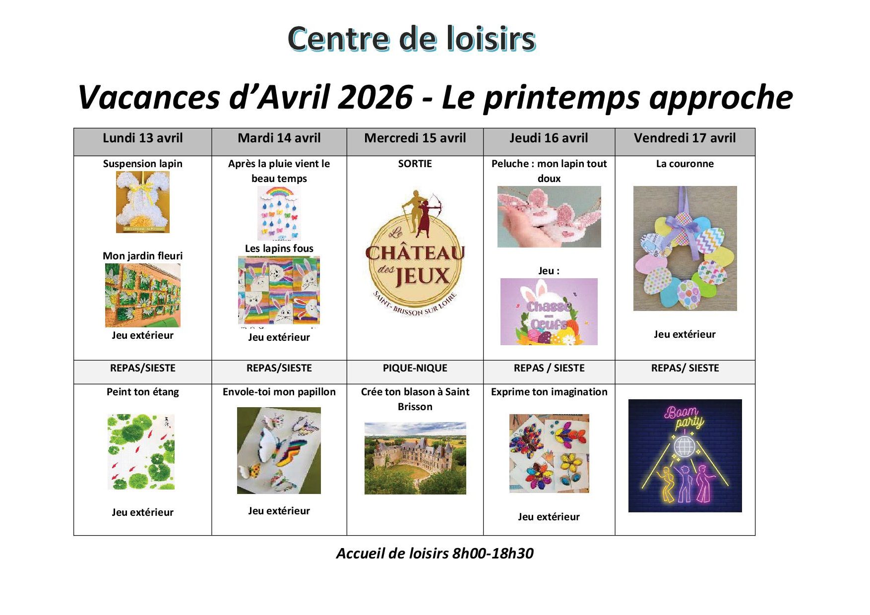 Les plannings d’activités sont consultables sur le site internet de la commune, Panneau Pocket, ainsi qu’à la porte de la structure.
