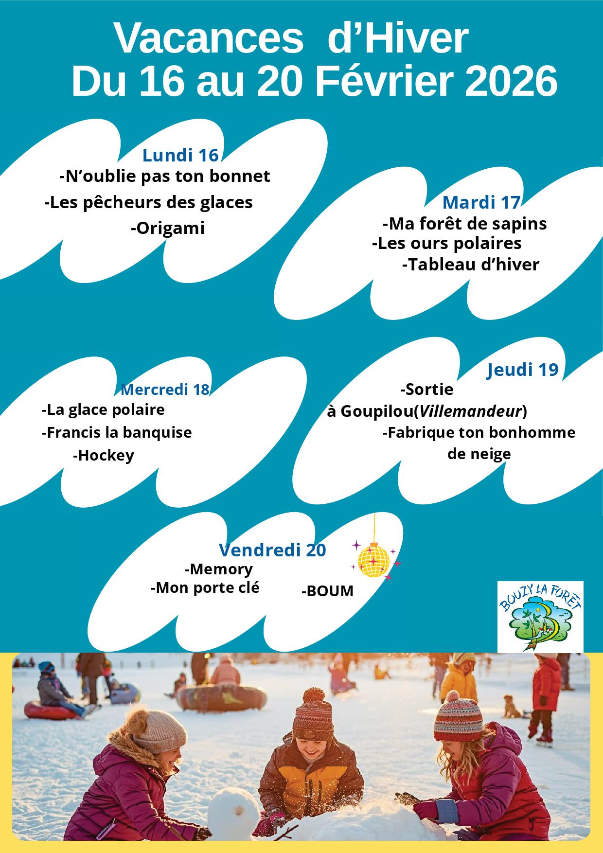 | Vacances de Février (semaine du lundi 16 au vendredi 20 février 2026) |
